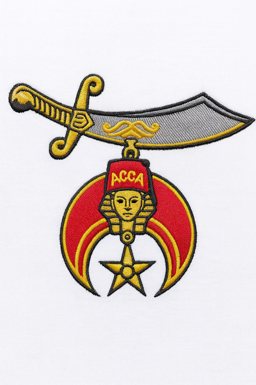 Polo shirt featuring the Heritage Shrine Club truck embroidered on the left chest, the Square and Compass on the right sleeve, and the Scimitar on the left sleeve.